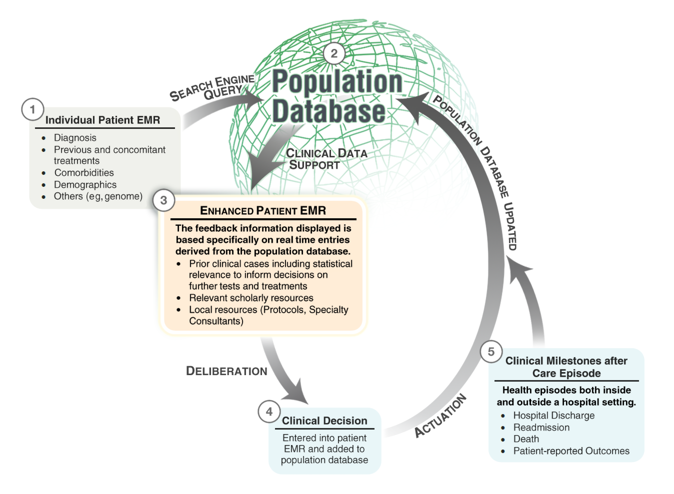 Patients should be encouraged to consent to have information that could be related to their disease and its treatment, stored and available for real-time analysis. The data should include a great depth of detail, Every time a patient comes for treatment we should check the current, updated outcome for that treatment in patients that are most similar to the one we propose to treat. That information should correct our initial proposal. Once a final decision is made, that patients course becomes part of the growing, searchable and expandable database. That patients course becomes part of the decision for the next patient.